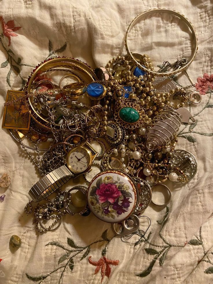 hand-picked mystery box filled with hidden jewelry treasures. Each box includes a unique mix of charms, necklaces, bracelets, earrings, and rare  pieces carefully selected to surprise you with vintage vibes, colourful stones, and artistic details. No two boxes are the same. Perfect for collectors, fashion lovers and anyone who enjoys discovering something unexpected